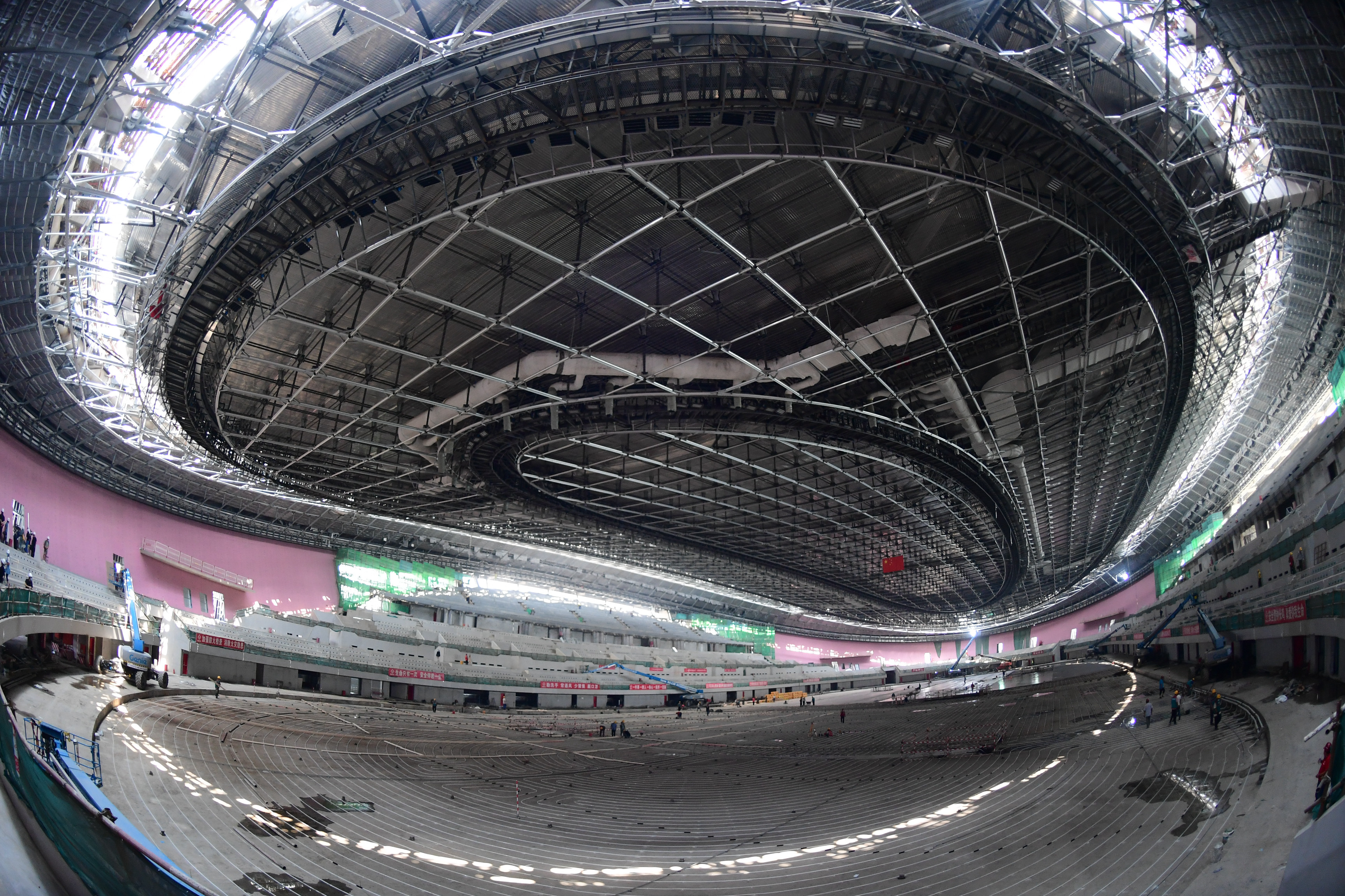 正在施工的國家速滑館內(nèi)景。新華社記者張晨霖?cái)z
