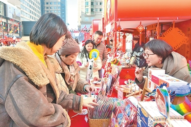 “天下相親與相愛,動身千里外心自成一脈……”隨著音樂在廣場響起,數(shù)名演員登上新春市集的“舞臺”,與現(xiàn)場的觀眾互動。“今年的市集主打‘福’文化,打造多元游樂場景,覆蓋市民游客新春采購、體驗、游玩等多樣需求,讓市民游客在這里開開心心、歡歡樂樂過好年。”北京新隆福文化投資有限公司總經(jīng)理助理高天亮說。
