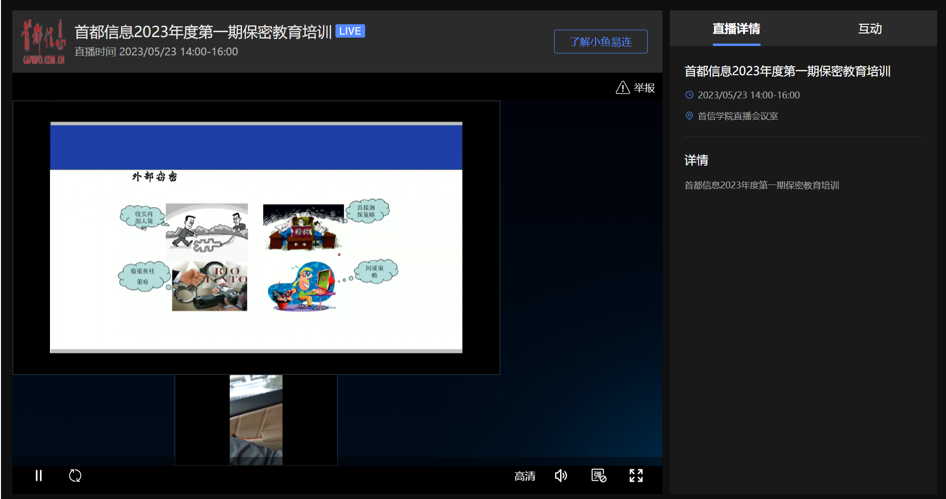 5月23日下午,保密辦公室聯(lián)合首信學(xué)院,通過首信學(xué)院云直播會議室,面向全體員工開展了公司2023年度第一期保密教育培訓(xùn),共900余人參加了培訓(xùn)。