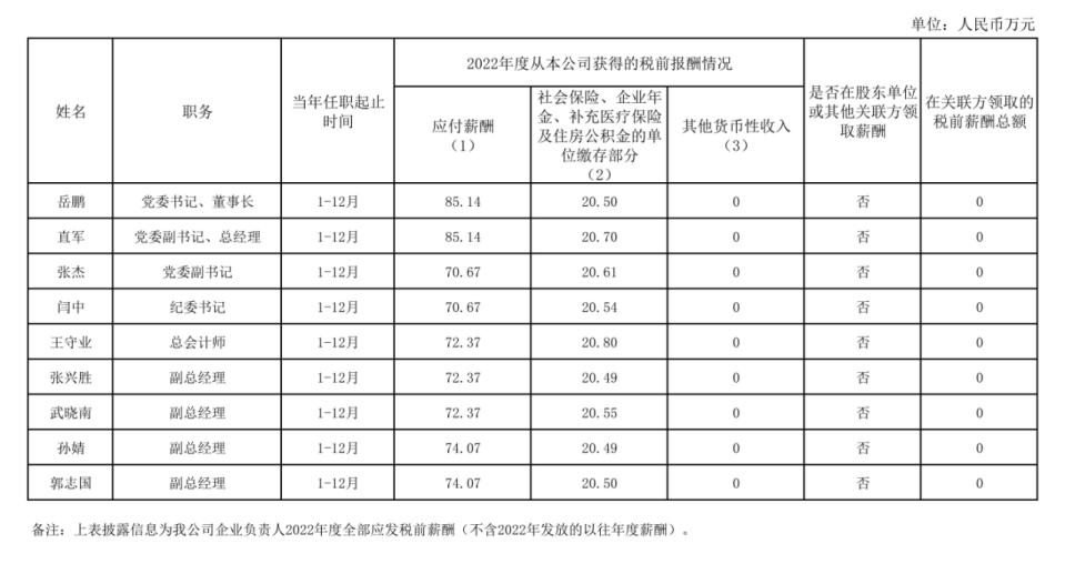 企業(yè)負(fù)責(zé)人2022年度薪酬情況