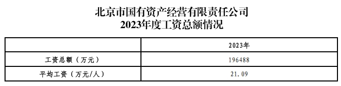 北京市國有資產(chǎn)經(jīng)營有限責(zé)任公司2023年度工資總額情況