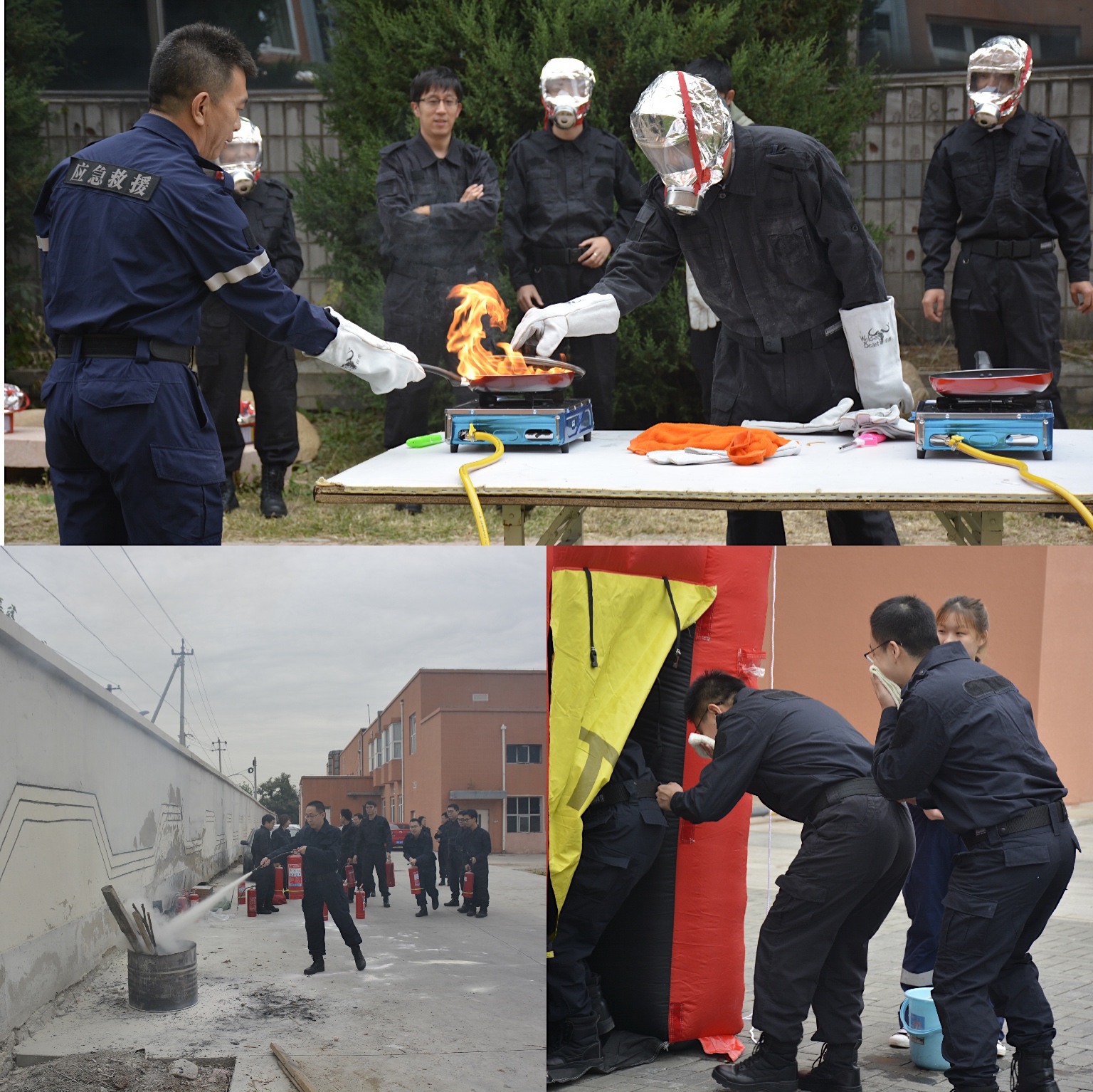 12日上午主要培訓(xùn)內(nèi)容為消防安全。參訓(xùn)學(xué)員通過實操學(xué)習(xí)如何借助毛巾、消防面罩等工具進(jìn)行煙霧逃生、廚房油鍋起火時如何撲救以及干粉滅火器的使用等技能。