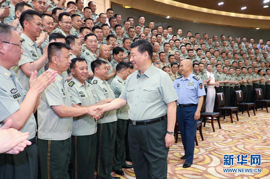 7月15日至16日,中共中央總書記、國家主席、中央軍委主席習(xí)近平在內(nèi)蒙古考察并指導(dǎo)開展“不忘初心、牢記使命”主題教育。這是16日上午,習(xí)近平在呼和浩特親切接見駐內(nèi)蒙古部隊(duì)副師職以上領(lǐng)導(dǎo)干部和團(tuán)級單位主官,代表黨中央和中央軍委向駐內(nèi)蒙古部隊(duì)全體官兵致以誠摯問候。 新華社記者 李剛 攝