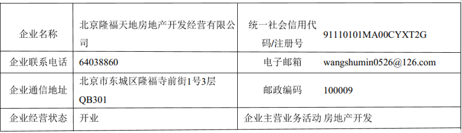北京隆福天地房地產(chǎn)開發(fā)經(jīng)營有限公司工商信息