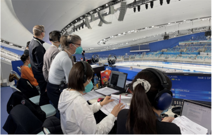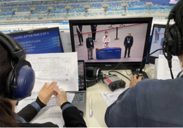 本次比賽為今年首場(chǎng)北京冬奧國(guó)際測(cè)試賽,為順利完成賽事體育展示服務(wù)保障工作,北奧集團(tuán)在冬奧組委文化活動(dòng)部的指導(dǎo)下,結(jié)合賽程賽制,積極研討競(jìng)賽日工作重點(diǎn),在賽前制定完善詳盡的體育展示腳本和賽時(shí)保障工作方案,并攜手所屬企業(yè)水晶石公司以及來(lái)自加拿大的場(chǎng)館制作人艾米、音樂總監(jiān)丹尼爾組建了一支19人的體育展示工作團(tuán)隊(duì)。