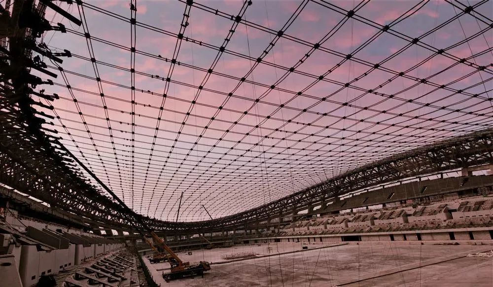 國家速滑館采用了雙曲面馬鞍形單層索網(wǎng)結(jié)構(gòu)屋面設(shè)計,通過49對承重索和30對穩(wěn)定索編織成長跨198米,短跨124米的索網(wǎng)狀屋面,再鋪設(shè)1080塊4×4米單元屋面板組裝而成,是目前世界上規(guī)模最大的單層雙向正交馬鞍形索網(wǎng)屋面體育館。采用這種索網(wǎng)結(jié)構(gòu)設(shè)計,“冰絲帶”的用鋼量僅為傳統(tǒng)屋面的四分之一。通過采用國產(chǎn)高釩封閉索,“冰絲帶”破解了屋頂索網(wǎng)結(jié)構(gòu)高釩密閉索“卡脖子”技術(shù),推動建成國內(nèi)首條生產(chǎn)線,打破了進口索的壟斷地位,填補了國產(chǎn)索在國內(nèi)大型場館的應(yīng)用空白。2020年5月,國家速滑館斬獲“2019年度中國鋼結(jié)構(gòu)行業(yè)的最高工程大獎——中國鋼結(jié)構(gòu)金獎年度杰出工程大獎”。