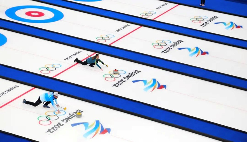北京2022年冬奧會冰壺混合雙人比賽進(jìn)行中