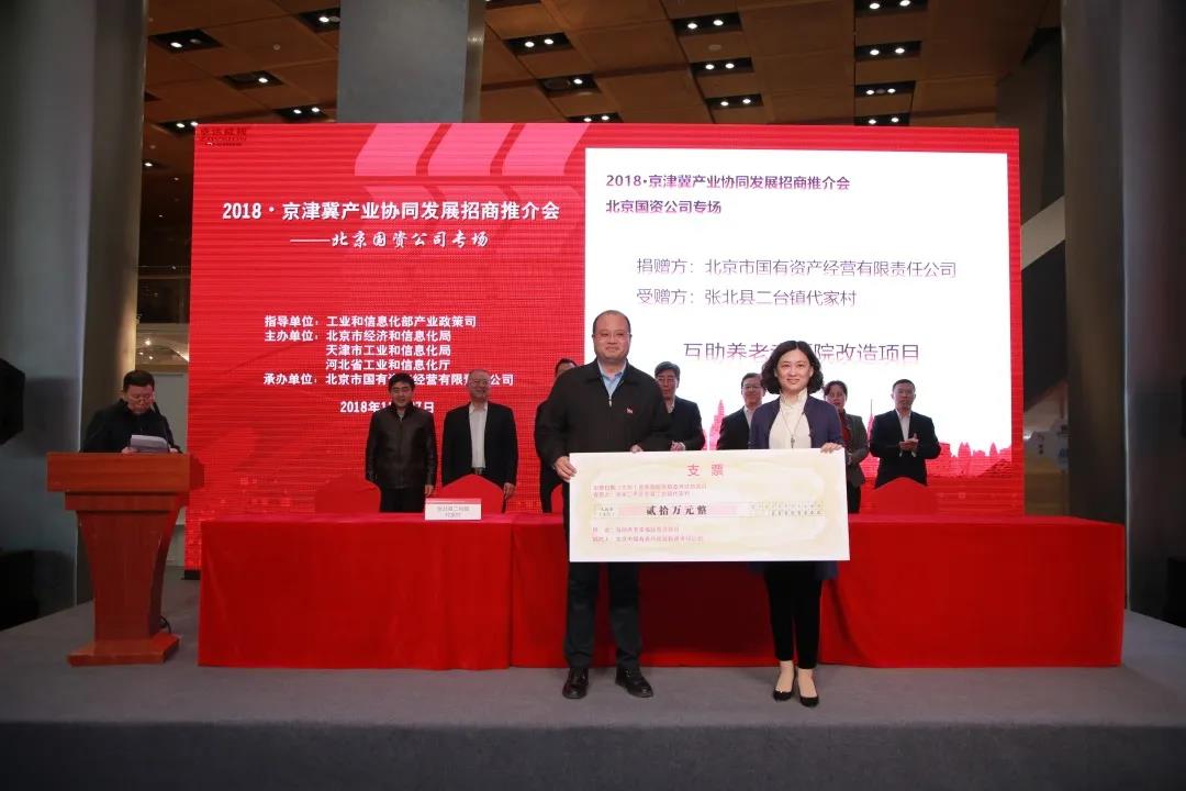 2018年11月,為進(jìn)一步推動京津冀協(xié)同發(fā)展,積極踐行國企社會責(zé)任,全力參與脫貧幫扶,北京國資公司承辦 “2018京津冀協(xié)同發(fā)展招商推介會——北京國資公司專場”活動。本次活動中,北京國資公司向代家村捐贈20萬元,專項用于互助養(yǎng)老幸福院改造項目。捐贈具體工作及后續(xù)事項由所屬北工投資負(fù)責(zé)落實。